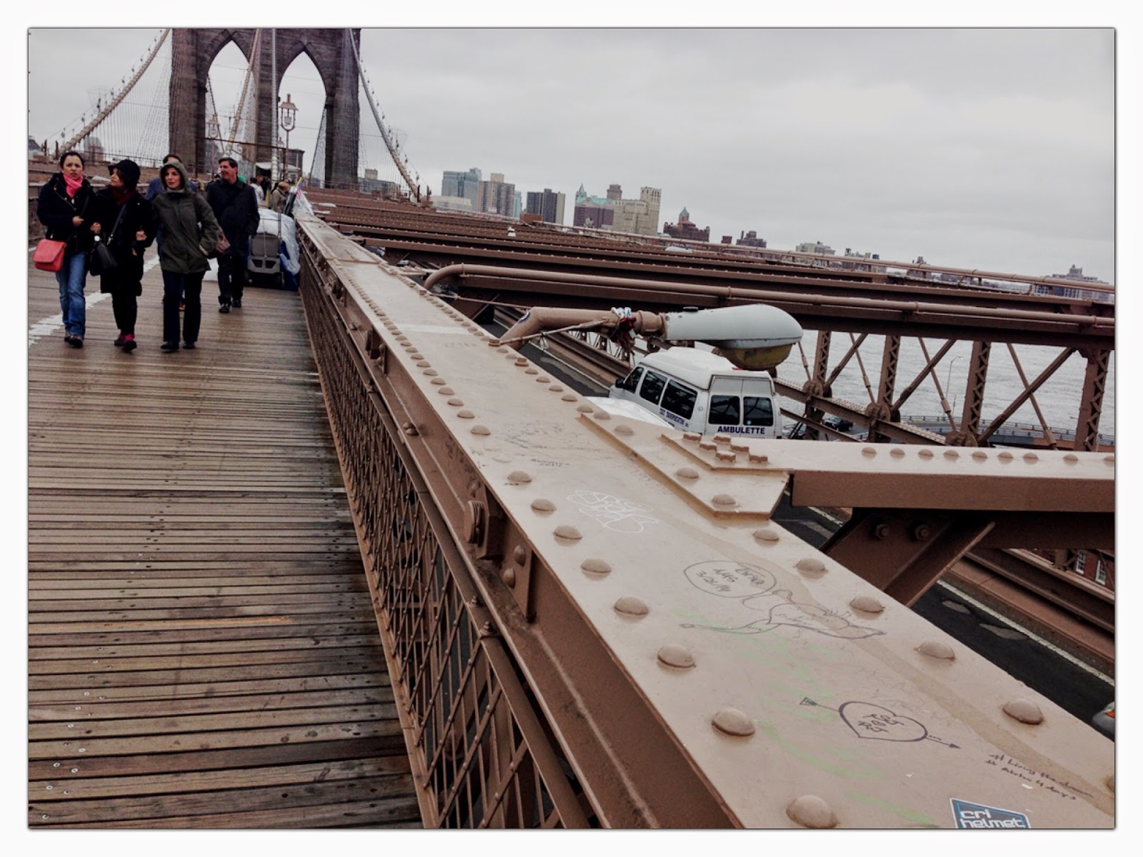 布魯克林大橋是美國最老的懸索橋之一,建於1870年,完工於1883年歴時14年,長1825公尺,是第一座使用由鋼鐵製成的吊橋,也是在當時世界上最長的橋梁,堪稱偉大的工程傑作,至今已有128年歷史的建築古蹟。是紐約觀光必訪的景點之一,很多電影都在這取景。